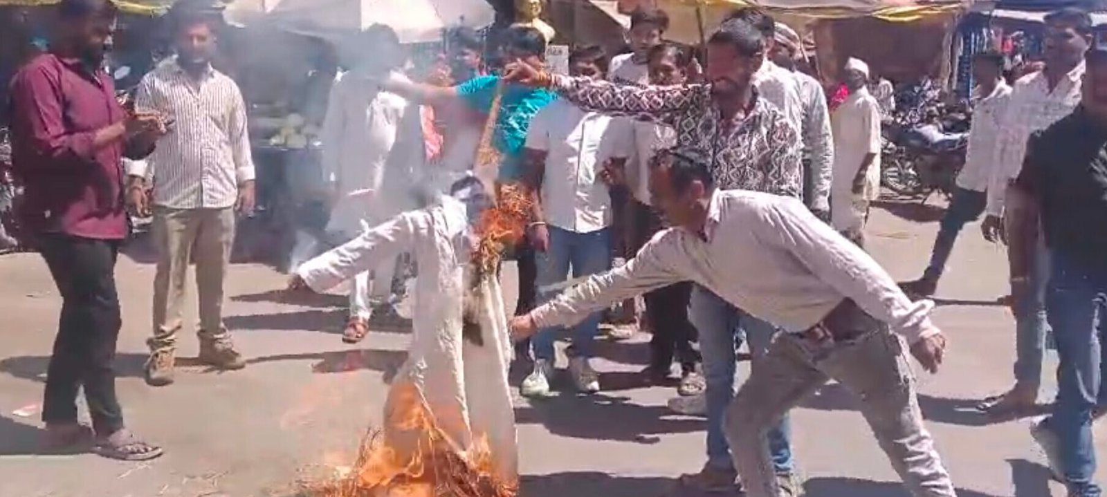 सिंसगर,मनीष वर्मा,ने पुलिस की आंखों से बचते हुए पुतले में आग लगाई।