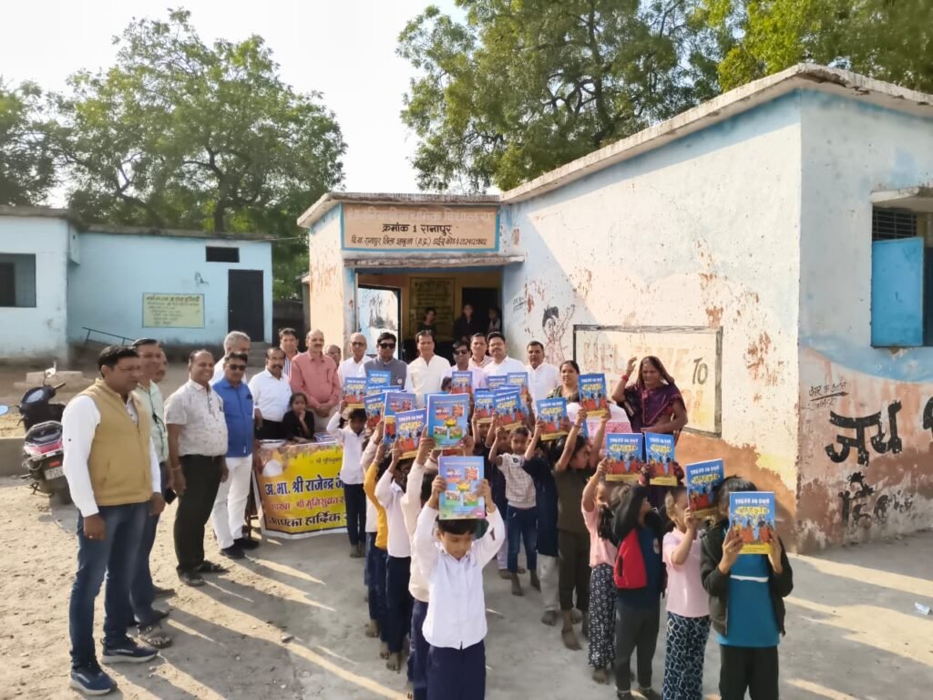 बुनियादी प्राथमिक विद्यालय में नोट बुक ओर पेन वितरित