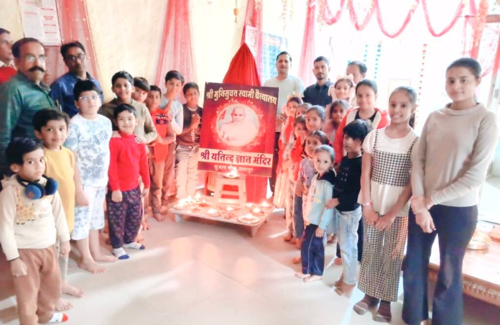 आचार्य श्री यतीन्द्रसुरीश्वरजी महाराज साहब की 65 वी पुण्यतिथि के अवसर पर श्री मुनिसुव्रत स्वामी जिनालय में गुरुगुणानूवाद सभा का आयोजन किया गया । पाठशाला की बालिका नीति सालेचा, मोक्षा नाहर, तन्वी जैन के संयोजन में आयोजित इस कार्यक्रम में श्री यतींद्र जयंत ज्ञान पाठशाला के बच्चो ने अपने घर थाली सजाकर पूज्य आचार्य श्री की आरती की । उसके बाद आचार्य श्री यतीन्द्रसुरीश्वरजी के गुणों का गुणानुवाद किया गया । पाठशाला की बालिका मुक्ति कटारिया , समाज के वरिष्ठ मनोहरलाल नाहर,नवयुवक परिषद के अध्यक्ष प्रवीण नाहर, प्रवीण कटारिया, दिनेश चंद्र नाहर, योगेश सालेचा ने अपने शब्दों से पूज्य आचार्य श्री के गुणों का बखान किया । विनय कटारिया,विमल कटारिया सहित अनेक समाजजन उपस्थित थे । कार्यक्रम का संचालन जितेंद्र सालेचा ने किया । कार्यक्रम में रविवार को आयोजित बाल मेले में पाठशाला के बच्चो को लाभांश भी वितरित किया गया ।