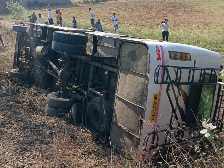 अस्थि विसर्जन के लिए जा रही यात्री बस पलटी,15 घायल