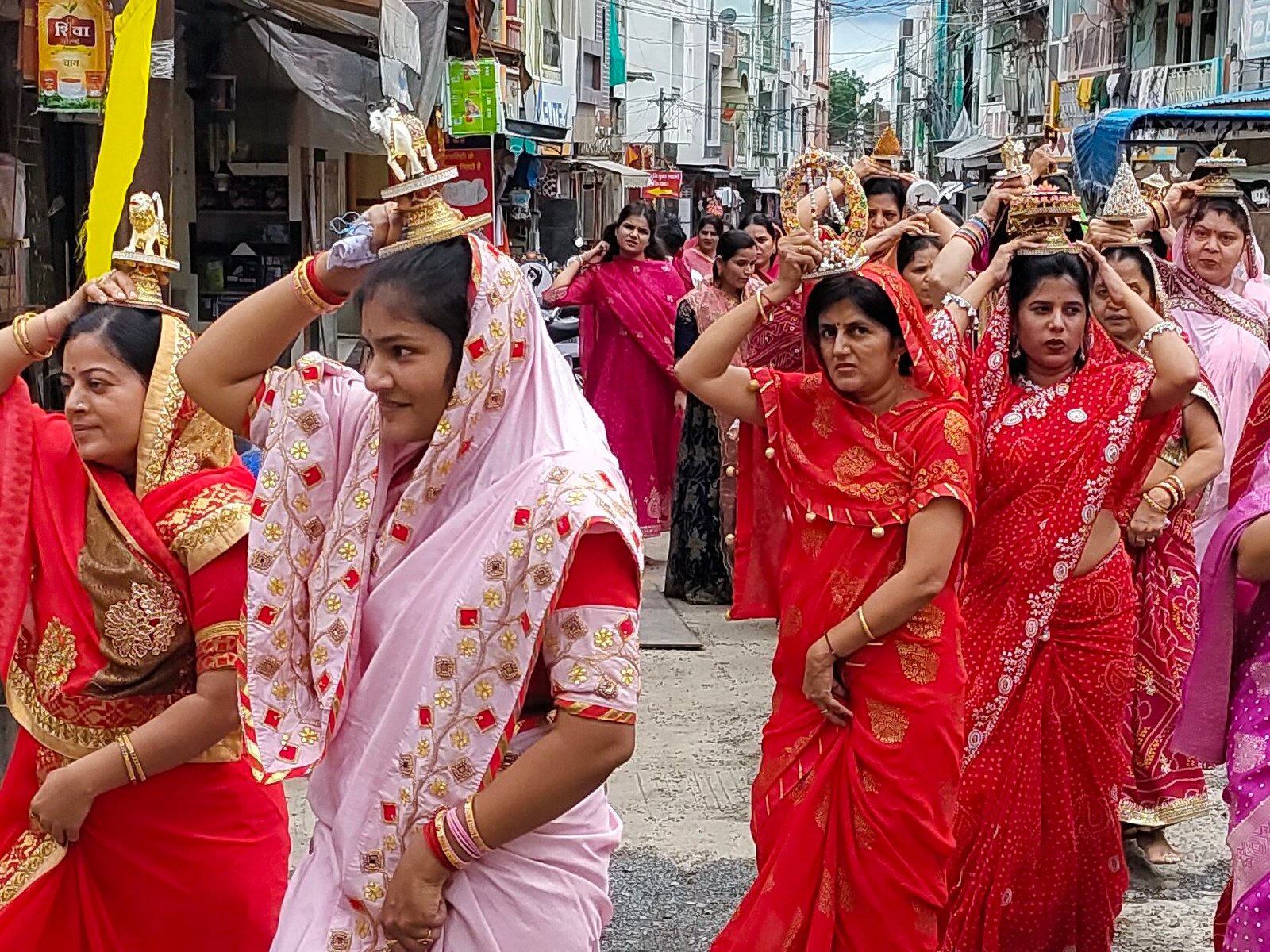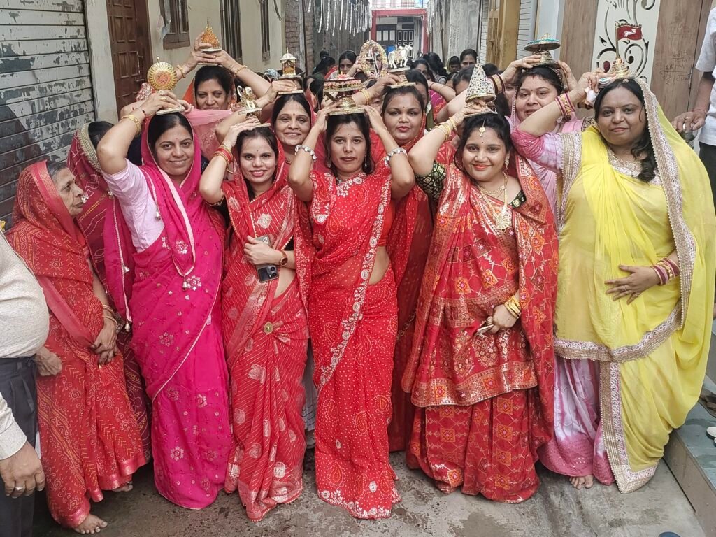 त्रिशला माता के चौदह सपनाजी के साथ पानाजी की शोभायात्रा निकली