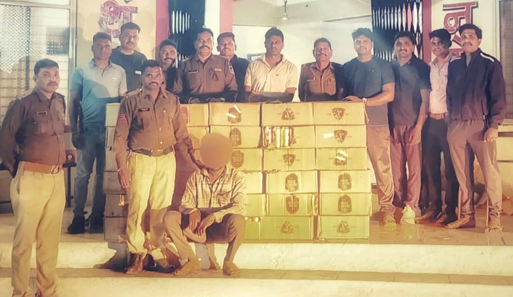 पुलिस अधीक्षक जिला झाबुआ श्री पद्मविलोचन शुक्ल के द्वारा सभी थाना प्रभारीयो को अवैध गतिविधीयो में लिप्त अपराधियो की धरपकड करने हेतु निर्देशित किया गया था, जिस पर अतिरिक्त पुलिस अधीक्षक श्री प्रेमलाल कुर्वे एवं अनुविभागीय अधिकारी झाबुआ श्रीमति रुपरेखा यादव के मार्गदर्शन में थाना प्रभारी राणापुर निरीक्षक श्री दिनेश रावत द्वारा पुलिस टीम बना कर अवैध गतिविधीयो में लिंप्त अपराधियों के विरूद्ध लगातार प्रभावी कार्यवाही की जा रही है। जिसके तारम्य में मुखबीर की सुचना मिली की थाना राणापुर क्षेत्र के ग्राम ढोल्यावाड बड़ा फलिया में मक्का की कडब (चारा) में अवैध शराब भगौरिया में बैचने हेतु छुपा रखी थी , थाना राणापुर की पुलिस टीम द्वारा दबिश देकर आरोपी हरमल पिता सुमजी भाबोर उम्र 34 साल निवासी ग्राम ढोल्यावाड के घर के समाने मक्का की कडब से माउंट बीयर 6000 कम्पनी की कुल 90 पेटीया जो करीब 1080 बल्क लीटर कीमती 2,80,800 रुपये विधीवत् जप्त कर थाना राणापुर पर अपराध क्रमांक 65/2025 धारा 34(2) आबकारी एक्ट का पंजीबध्द कर विवेचना में लिया गया ।